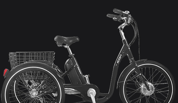 Discover the effortless comfort of the Icon E-Scape tricycle. Load yourself up with cargo in the 59x49cm (LxW) rear steel basket. Ride smoother with power assist hub motor, LCD display, and 36V Lithium Ion Battery. Featuring a 7-Speed Drivetrain to provide a big range of gearing for everyday riding.